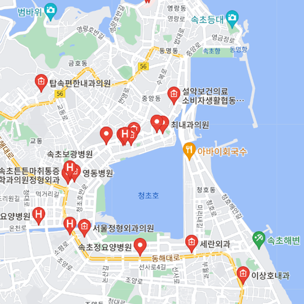 병원과 약국은 해당 지점마다 진료시간과 영업일이 다를 수 있는 만큼 방문 전 반드시 연락해보고 가시는 것을 추천드립니다. 강원 속초시는 교동, 금호동, 노학동, 대포동, 동명동, 영랑동, 조양동, 청호동으로 구성되어 있습니다.