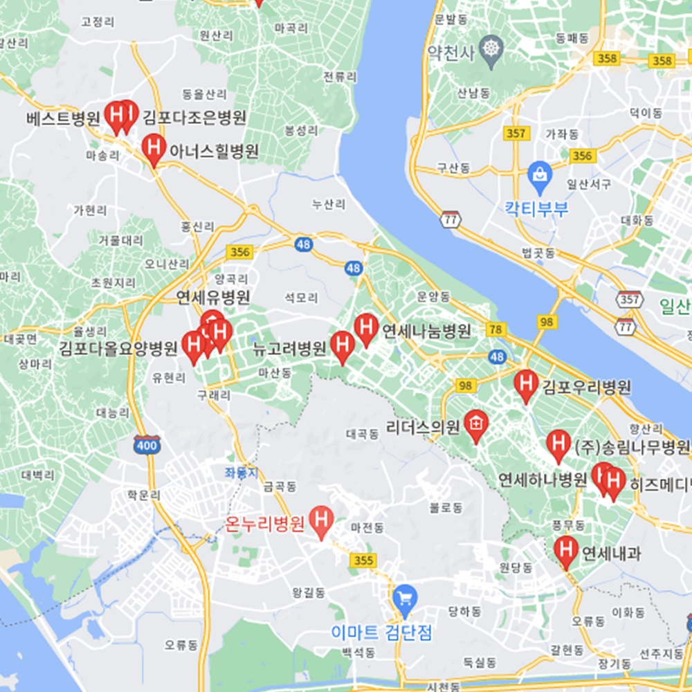 병원과 약국은 해당 지점마다 진료시간과 영업일이 다를 수 있는 만큼 방문 전 반드시 연락해보고 가시는 것을 추천드립니다. 경기 김포시는 구래동, 김포본동, 마산동, 사우동, 운양동, 장기동, 장기본동, 풍무동, 고촌읍, 양촌읍, 통진읍, 대곶면, 월곶면, 하성면으로 구성되어 있습니다.