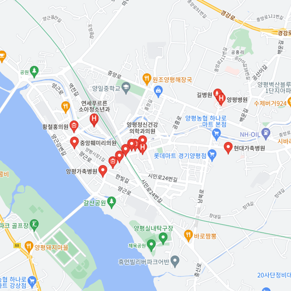 병원과 약국은 해당 지점마다 진료시간과 영업일이 다를 수 있는 만큼 방문 전 반드시 연락해보고 가시는 것을 추천드립니다. 경기 양평군은 양평읍, 강상면, 강하면, 개군면, 단월면, 서종면, 양동면, 양서면, 옥천면, 용문면, 지평면, 청운면으로 구성되어 있습니다.