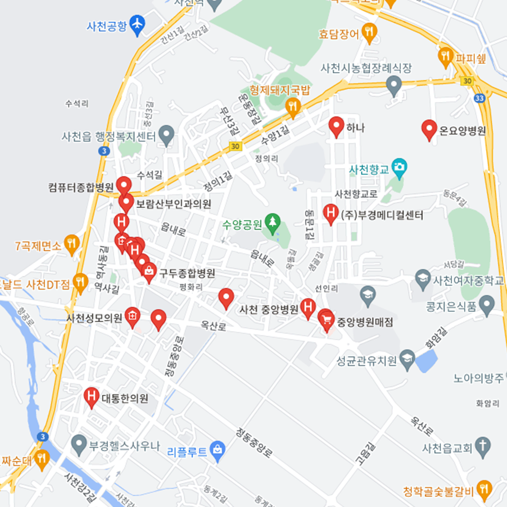 - 수영구 : 좋은강안병원, BHS한서병원, 센텀종합병원