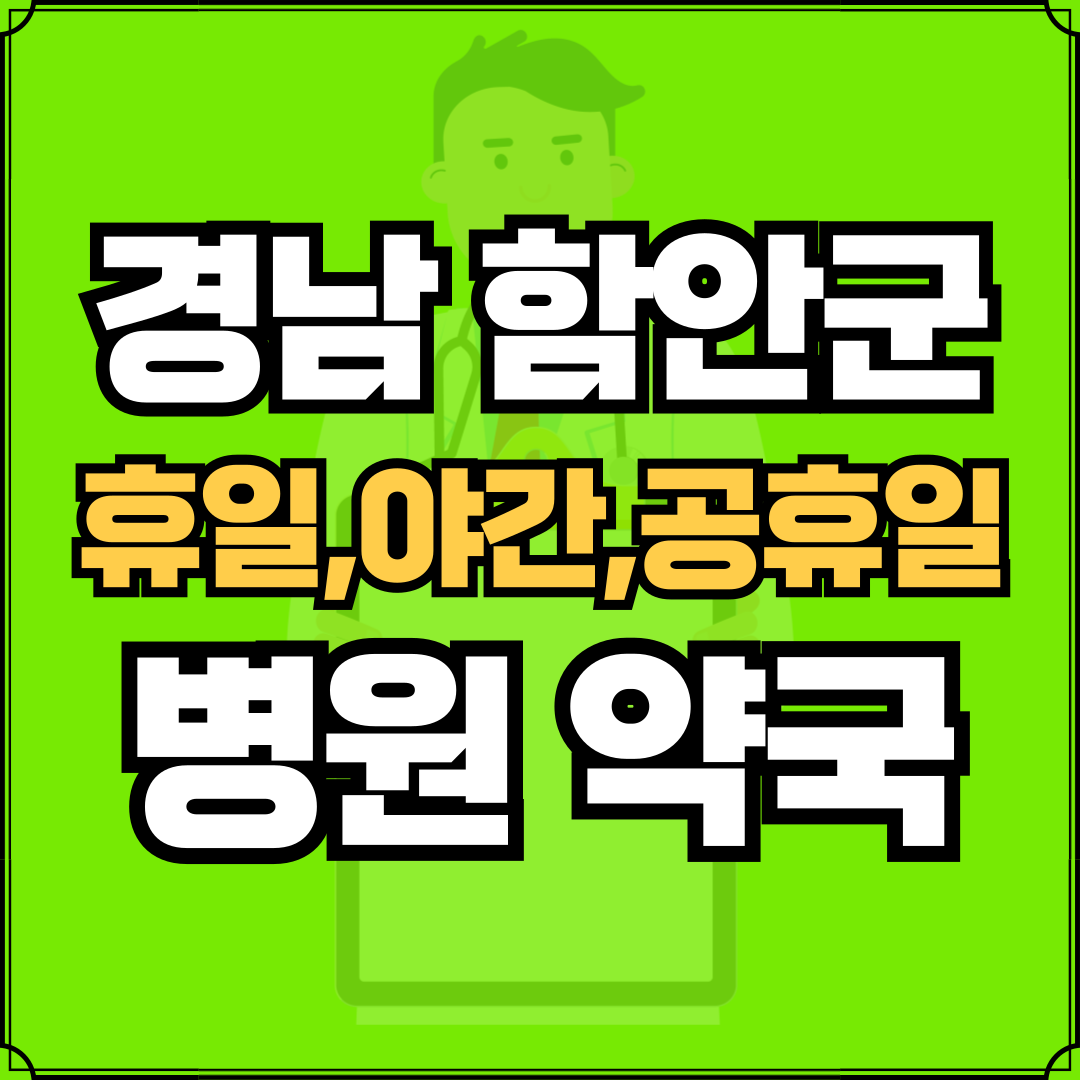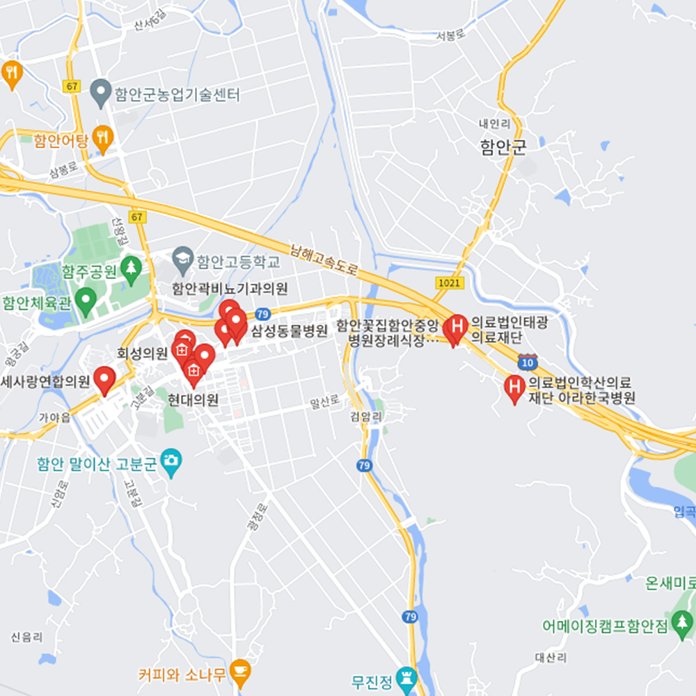 병원과 약국은 해당 지점마다 진료시간과 영업일이 다를 수 있는 만큼 방문 전 반드시 연락해보고 가시는 것을 추천드립니다. 경남 함안군은 가야읍, 칠원읍, 군북면, 대산면, 법수면, 산인면, 여항면, 칠북면, 칠서면, 함안면으로 구성되어 있습니다.