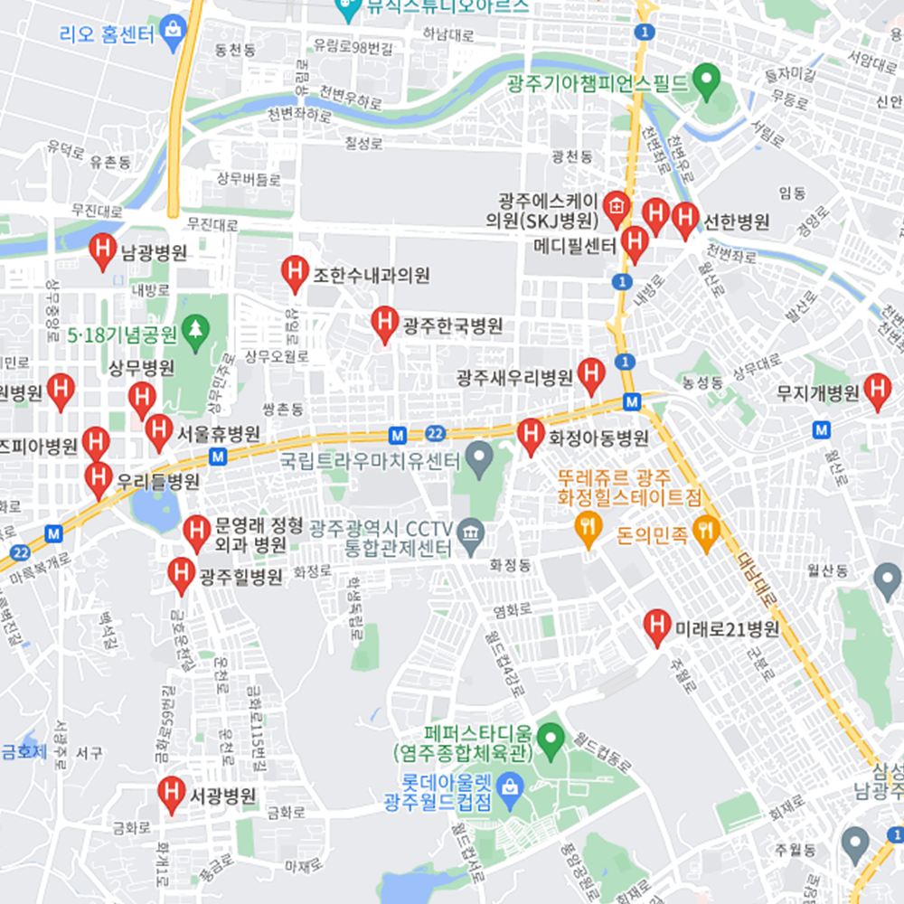 - 서구 : 광주한국병원, 미래로21병원, 상무병원, 서광병원, 선한병원