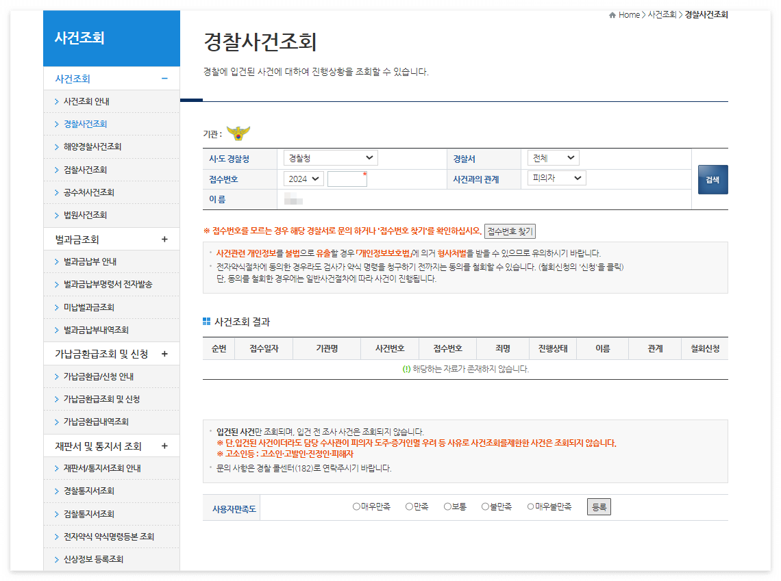 경찰 사건접수 조회하기