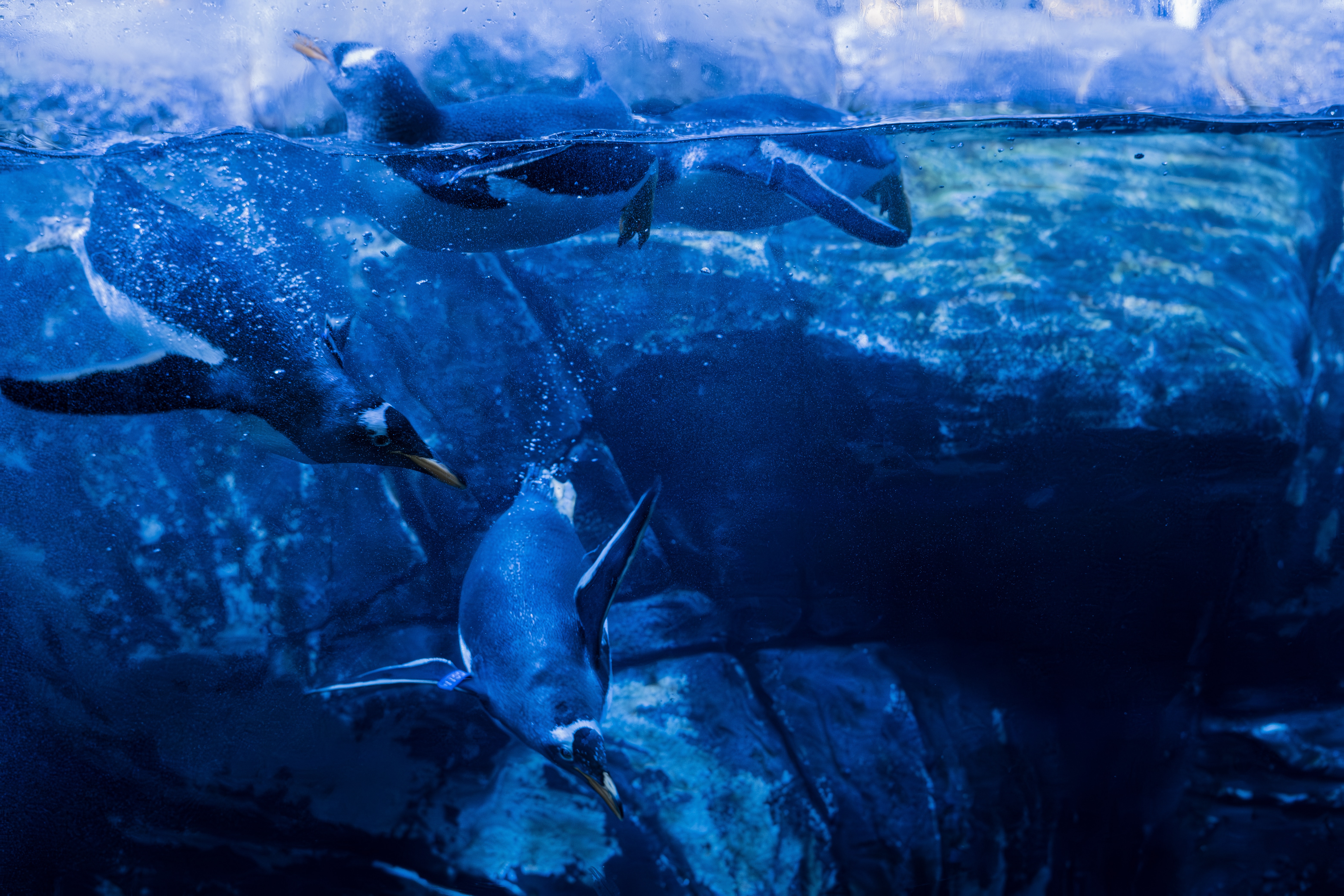 펭귄은 먹이를 찾아 엄청난 깊이까지 도달할 수 있는 잠수 능력으로 유명합니다. 일부 종은 520미터(1,700피트) 이상의 깊이까지 잠수하여 몇 분 동안 잠수할 수 있습니다. 그들은 유선형의 몸체와 강력한 지느러미발에 의존하여 물을 통해 정확하게 나아갑니다.