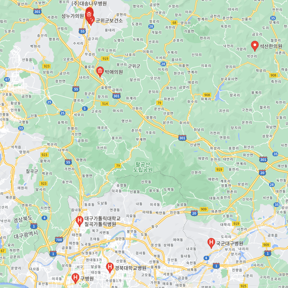 - 동구 : 대구파티마병원, 강남종합병원