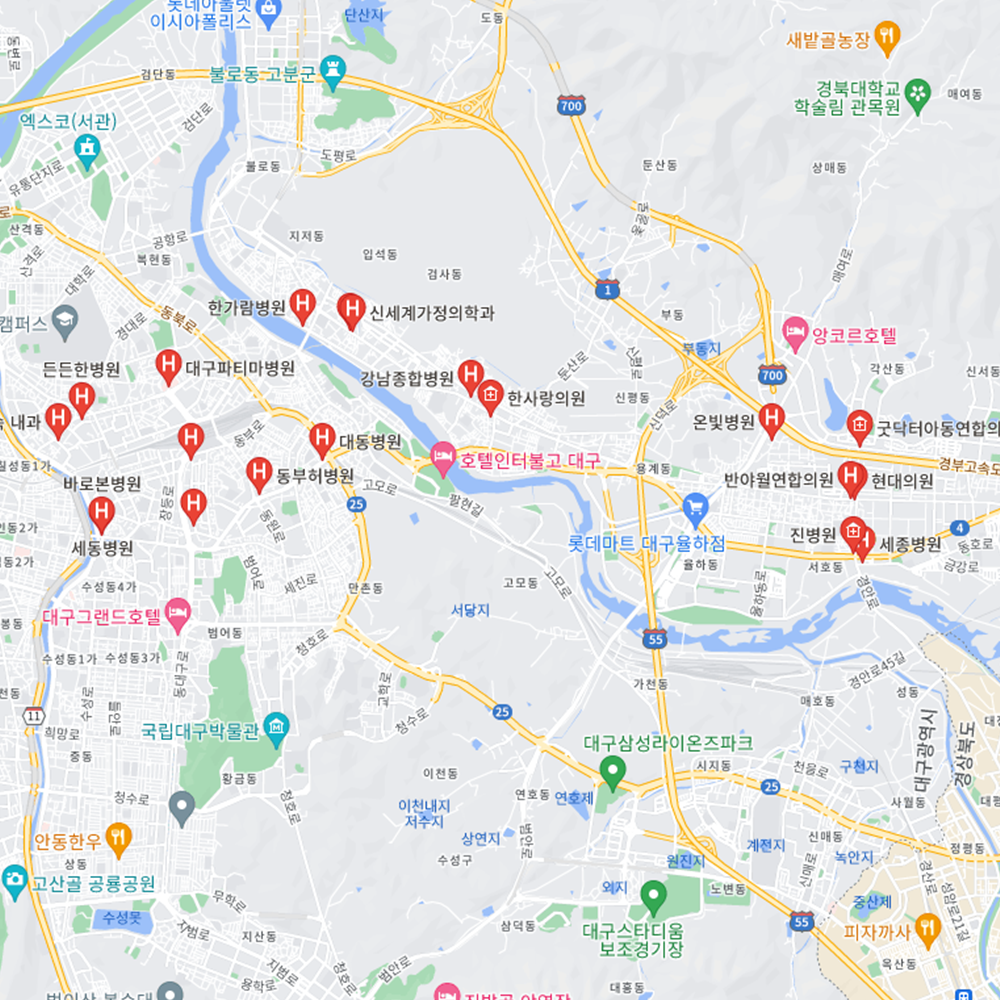 - 동구 : 대구파티마병원, 강남종합병원