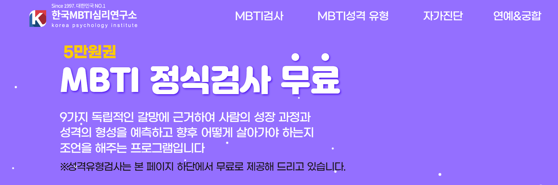 최신버전 MBTI 검사를 5분만에 무료로 할 수 있는 곳이 있습니다. 상당히 정확도가 높아서 많은 분들이 이용하는 곳인데요. 아래에 링크를 통해 접속하시면 바로 시작할 수 있습니다.