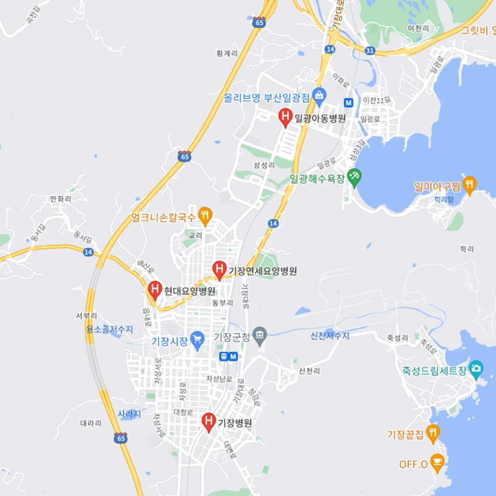 병원과 약국은 해당 지점마다 진료시간과 영업일이 다를 수 있는 만큼 방문 전 반드시 연락해보고 가시는 것을 추천드립니다. 부산 기장군은 기장읍, 장안읍, 정관읍, 일광읍, 철마면으로 구성되어 있습니다.