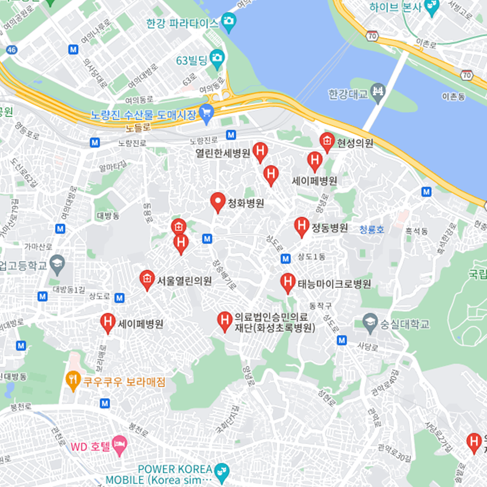 병원과 약국은 해당 지점마다 진료시간과 영업일이 다를 수 있는 만큼 방문 전 반드시 연락해보고 가시는 것을 추천드립니다. 서울 동작구는 노량진1동, 노량진2동, 상도1동, 상도2동, 상도3동, 상도4동, 흑석동, 사당1동, 사당2동, 사당3동, 사당4동, 사당5동, 대방동, 신대방1동, 신대방2동으로 구성되어 있습니다.