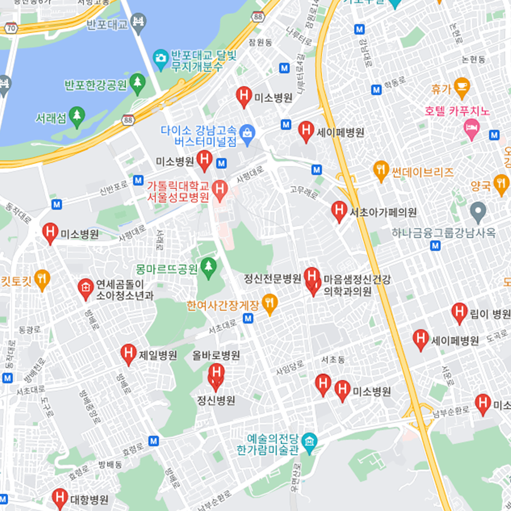 - 서초구 : 가톨릭대학교 서울성모병원, 기쁨병원