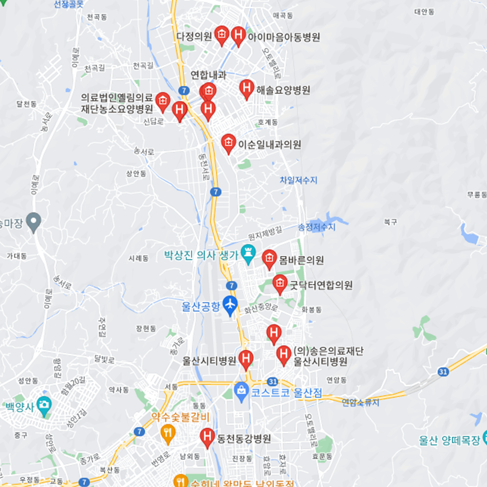 - 북구 : 울산엘리야병원, 송은의료재단 울산시티병원