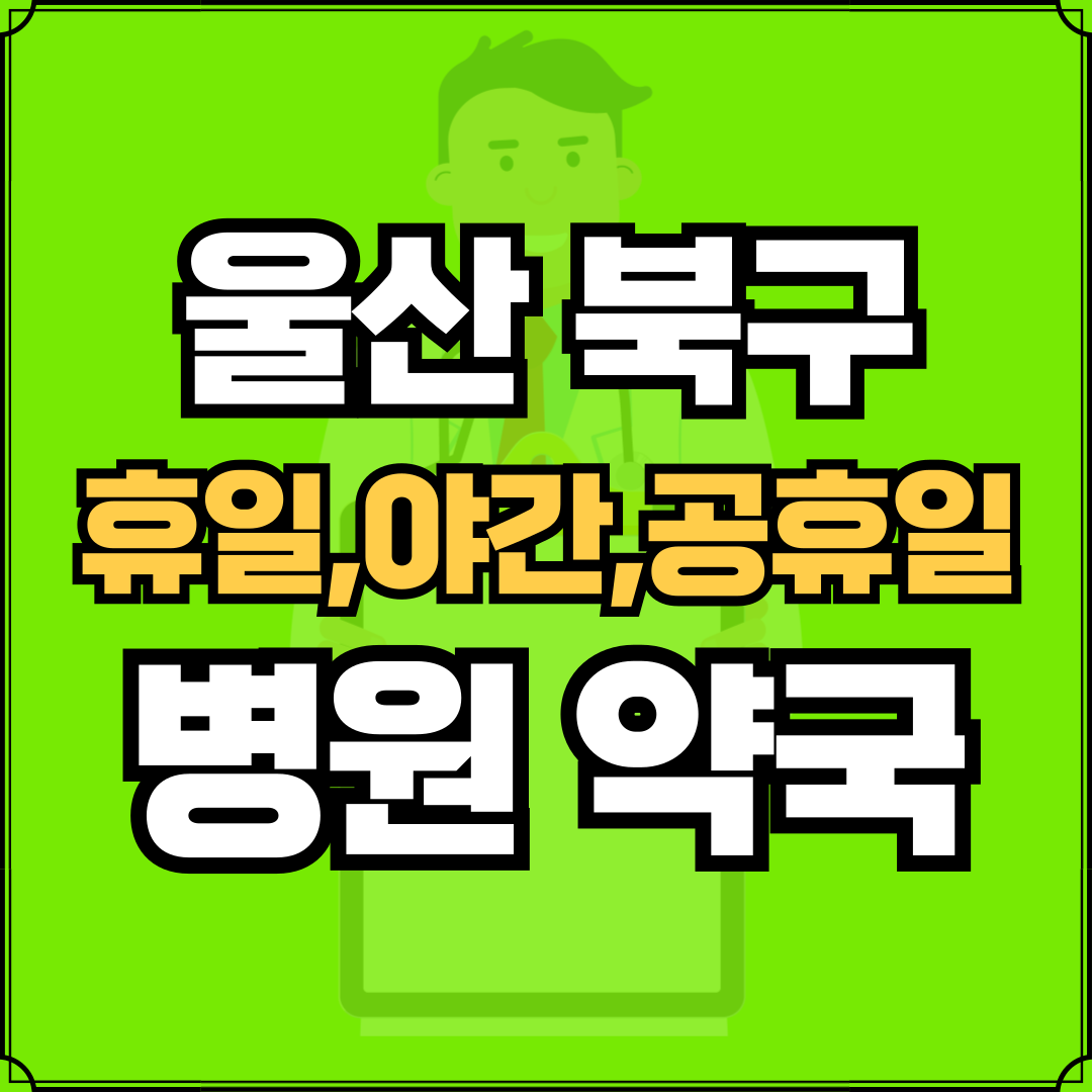 병원과 약국은 해당 지점마다 진료시간과 영업일이 다를 수 있는 만큼 방문 전 반드시 연락해보고 가시는 것을 추천드립니다. 울산 북구는 효문동, 양정동, 염포동, 농소1동, 농소2동, 농소3동, 송정동, 강동동으로 구성되어 있습니다.