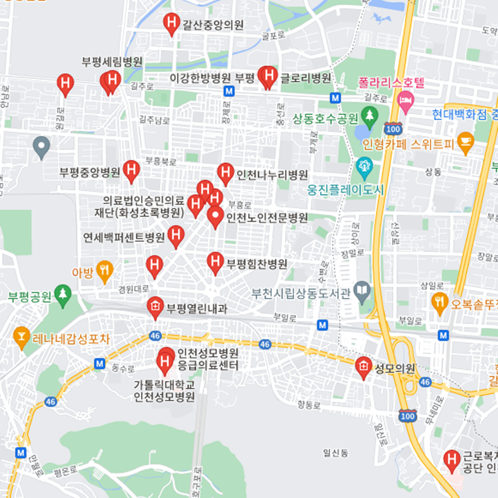 병원과 약국은 해당 지점마다 진료시간과 영업일이 다를 수 있는 만큼 방문 전 반드시 연락해보고 가시는 것을 추천드립니다. 인천 부평구는 부평1동, 부평2동, 부평3동, 부평4동, 부평5동, 부평6동, 산곡1동, 산곡2동, 산곡3동, 산곡4동, 청천1동, 청천2동, 갈산1동, 갈산2동, 삼산1동, 삼산2동, 부개1동, 부개2동, 부개3동, 일신동, 십정1동, 십정2동으로 구성되어 있습니다.