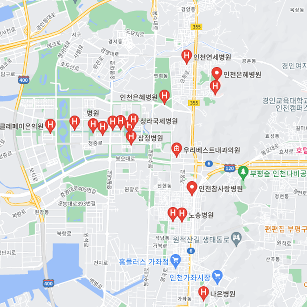 병원과 약국은 해당 지점마다 진료시간과 영업일이 다를 수 있는 만큼 방문 전 반드시 연락해보고 가시는 것을 추천드립니다. 인천 서구는 검암경서동, 연희동, 가정1동, 가정2동, 가정3동, 신현원창동, 석남1동, 석남2동, 석남3동, 가좌1동, 가좌2동, 가좌3동, 가좌4동, 청라1동, 청라2동, 청라3동, 검단동, 불로대곡동, 원당동, 당하동, 오류왕길동, 마전동, 아라동으로 구성되어 있습니다.