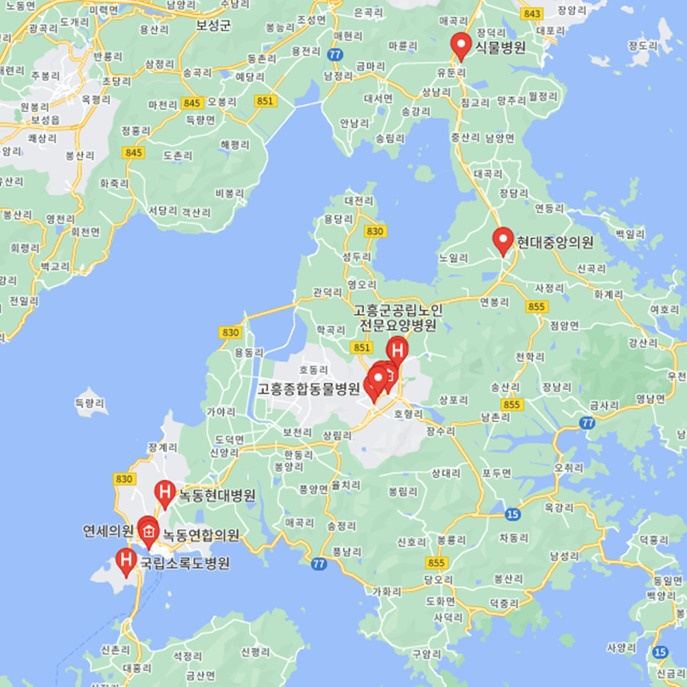 병원과 약국은 해당 지점마다 진료시간과 영업일이 다를 수 있는 만큼 방문 전 반드시 연락해보고 가시는 것을 추천드립니다. 전남 고흥군은 고흥읍, 도양읍, 과역면, 금산면, 남양면, 대서면, 도덕면, 도화면, 동강면, 동일면, 두원면, 봉래면, 영남면, 점암면, 포두면, 풍양면으로 구성되어 있습니다.