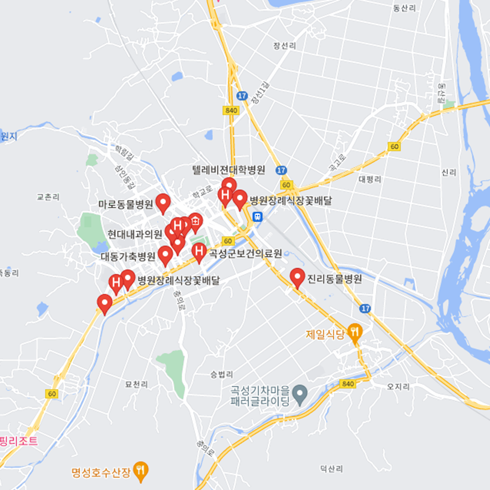 병원과 약국은 해당 지점마다 진료시간과 영업일이 다를 수 있는 만큼 방문 전 반드시 연락해보고 가시는 것을 추천드립니다. 전남 곡성군은 곡성읍, 겸면, 고달면, 목사동면, 삼기면, 석곡면, 오곡면, 오산면, 옥과면, 입면, 죽곡면으로 구성되어 있습니다.
