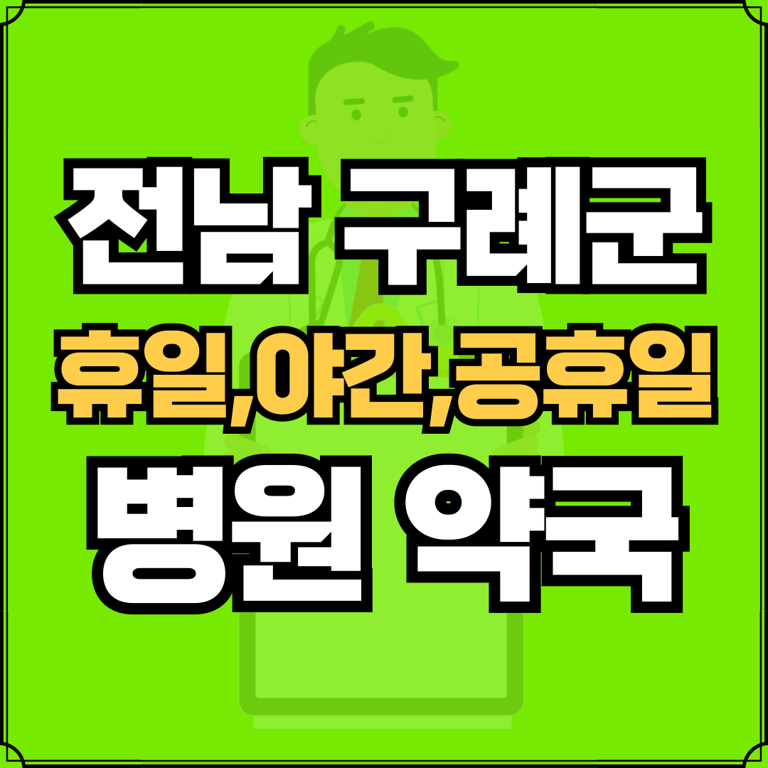 병원과 약국은 해당 지점마다 진료시간과 영업일이 다를 수 있는 만큼 방문 전 반드시 연락해보고 가시는 것을 추천드립니다. 전남 구례군은 구례읍, 문척면, 간전면, 토지면, 마산면, 용방면, 광의면, 산동면으로 구성되어 있습니다.