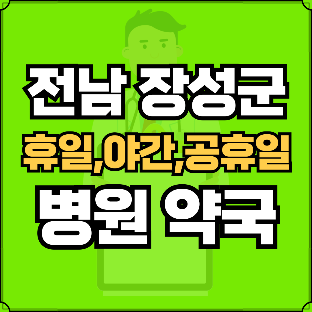 병원과 약국은 해당 지점마다 진료시간과 영업일이 다를 수 있는 만큼 방문 전 반드시 연락해보고 가시는 것을 추천드립니다. 전남 장성군은 장성읍, 남면, 동화면, 북이면, 북일면, 북하면, 삼계면, 진원면, 삼서면, 서삼면, 황룡면으로 구성되어 있습니다.