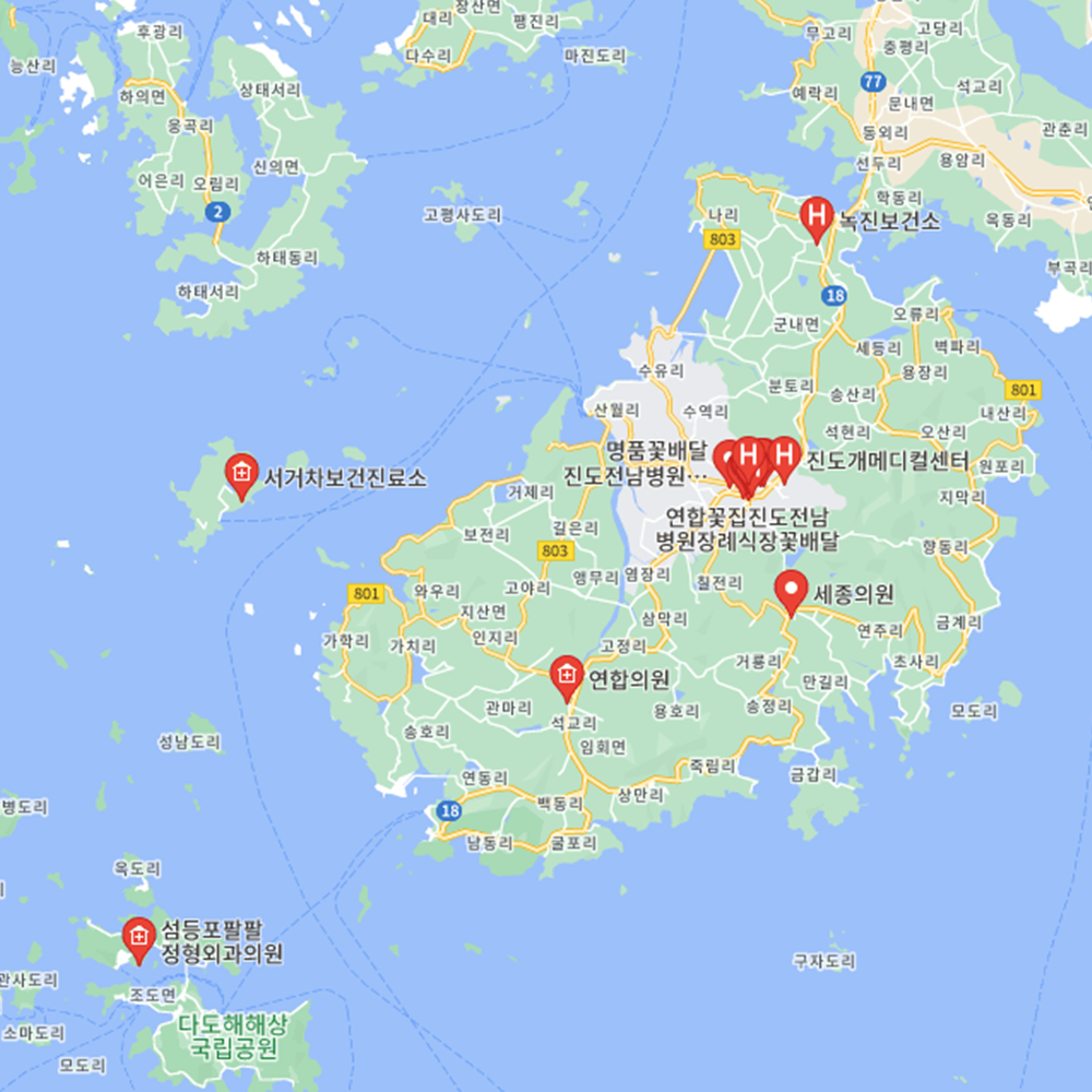병원과 약국은 해당 지점마다 진료시간과 영업일이 다를 수 있는 만큼 방문 전 반드시 연락해보고 가시는 것을 추천드립니다. 전남 진도군은 진도읍, 고군면, 군내면, 의신면, 임회면, 조도면, 지산면으로 구성되어 있습니다.