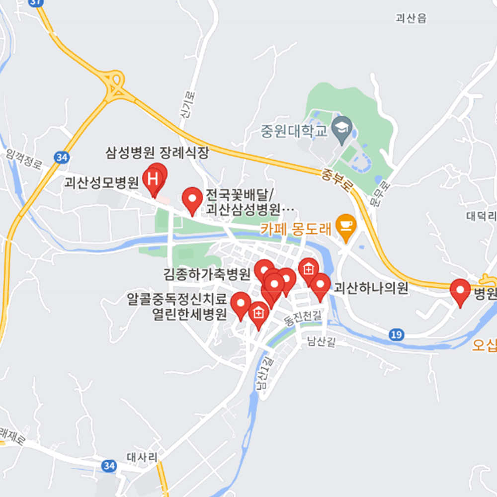 병원과 약국은 해당 지점마다 진료시간과 영업일이 다를 수 있는 만큼 방문 전 반드시 연락해보고 가시는 것을 추천드립니다. 충북 괴산군은 괴산읍, 감물면, 문광면, 불정면, 사리면, 소수면, 연풍면, 장연면, 청안면, 청천면, 칠성면으로 구성되어 있습니다.
