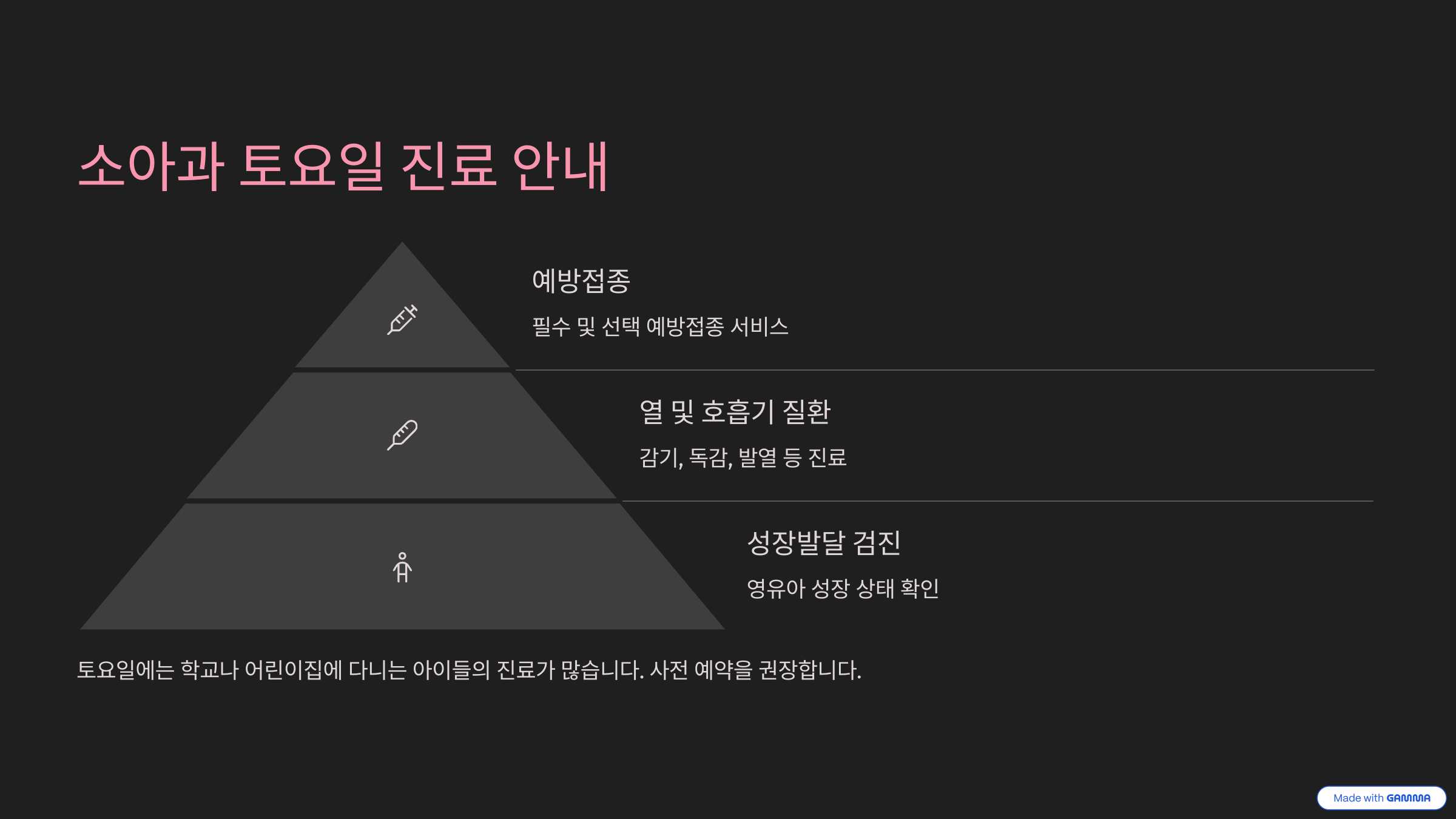 특히 정기 검진이나 예방접종의 경우 사전 예약을 하는 것이 좋으며, 토요일 진료 시간은 병원마다 다르므로 방문 전 전화로 확인하는 것이 도움이 됩니다.